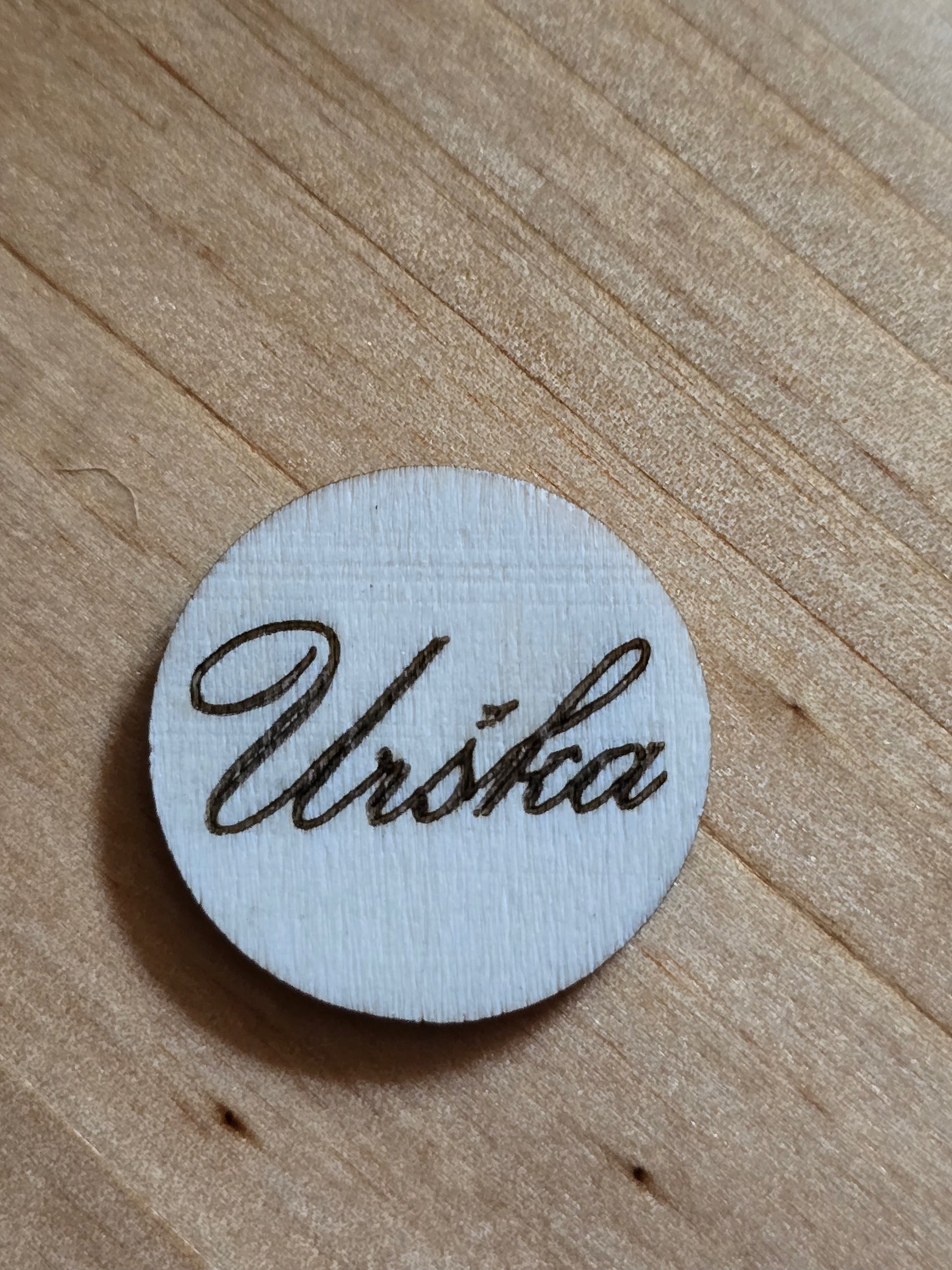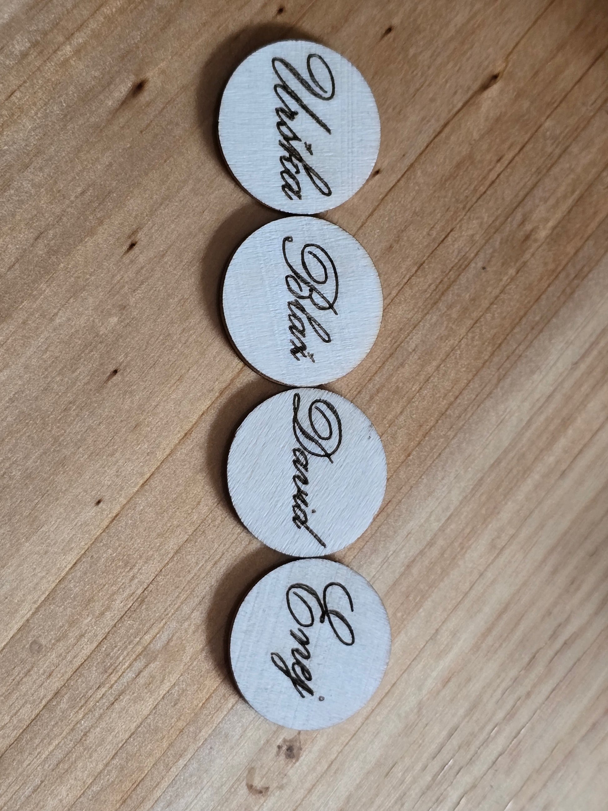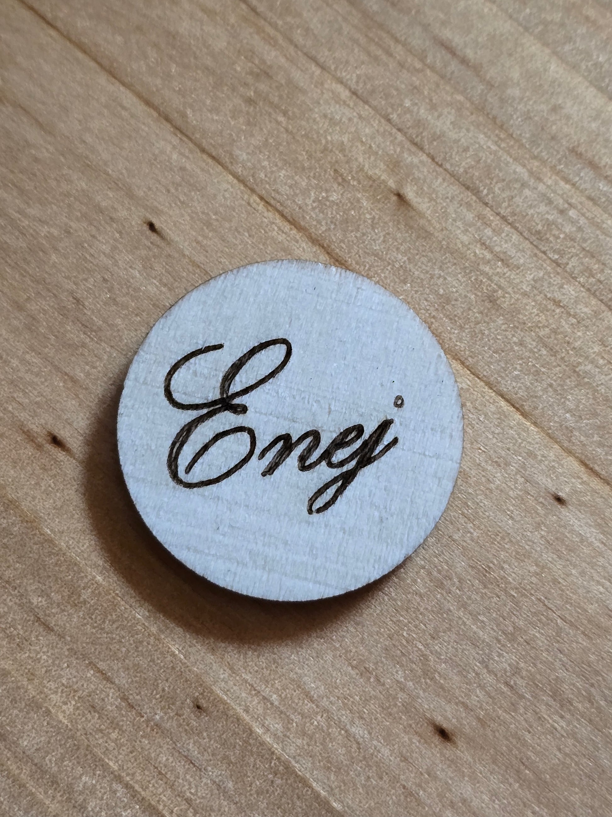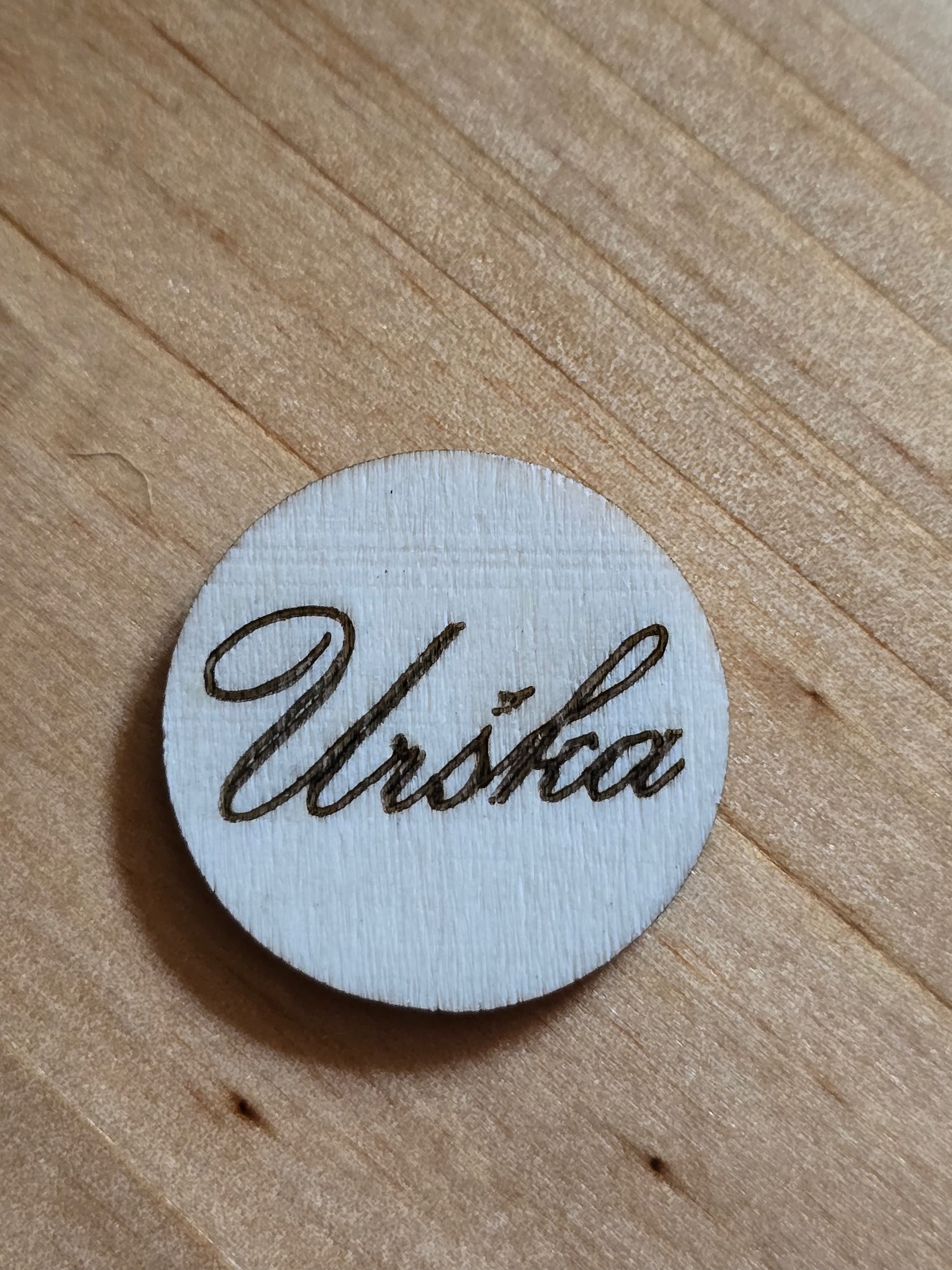 Kovinski kovanec z imenom ali poljubno grafiko. Izdelamo ga po želji, ki nam jo sporočite na e-pošto ali pritisnete contact zgoraj levo.