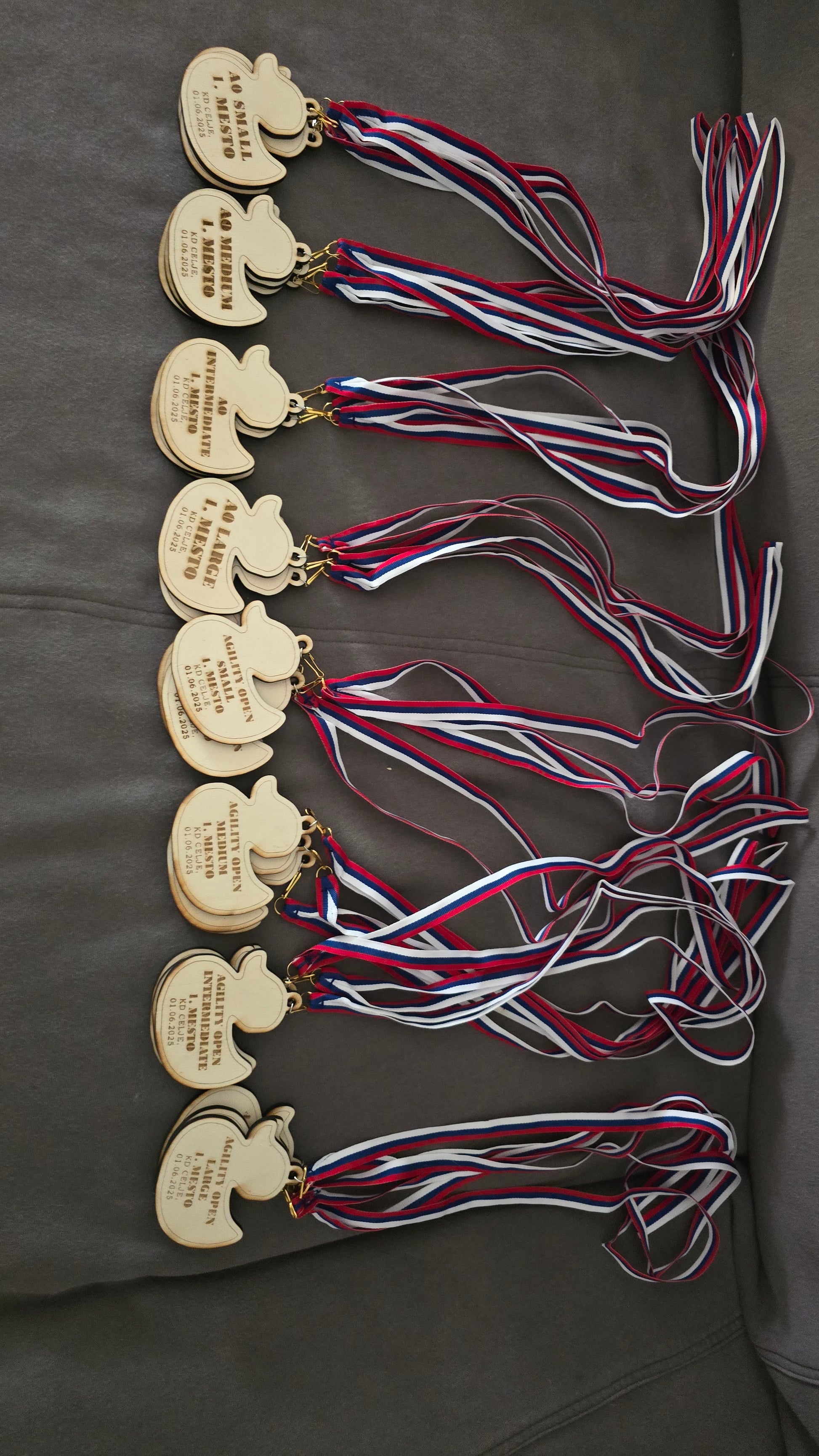 Lesena medalja za tekmovanja ali otroške igre. Izdelamo jo po meri- na e-pošto nam posredujete vsebino medalje, mi jo uredimo in vžgemo. Izrežemo tudi različne oblike medalje po meri.
