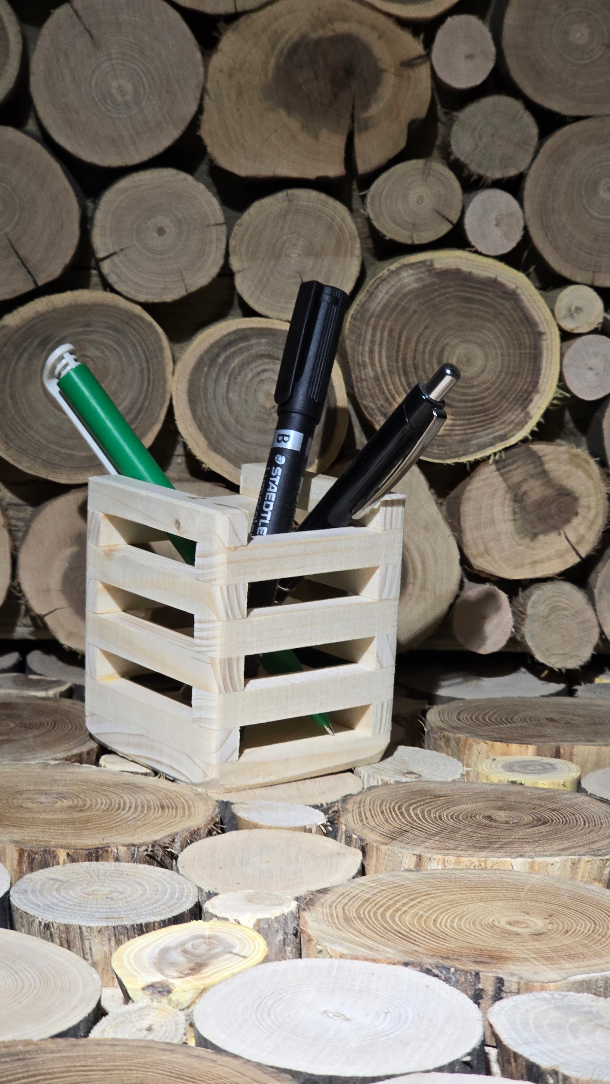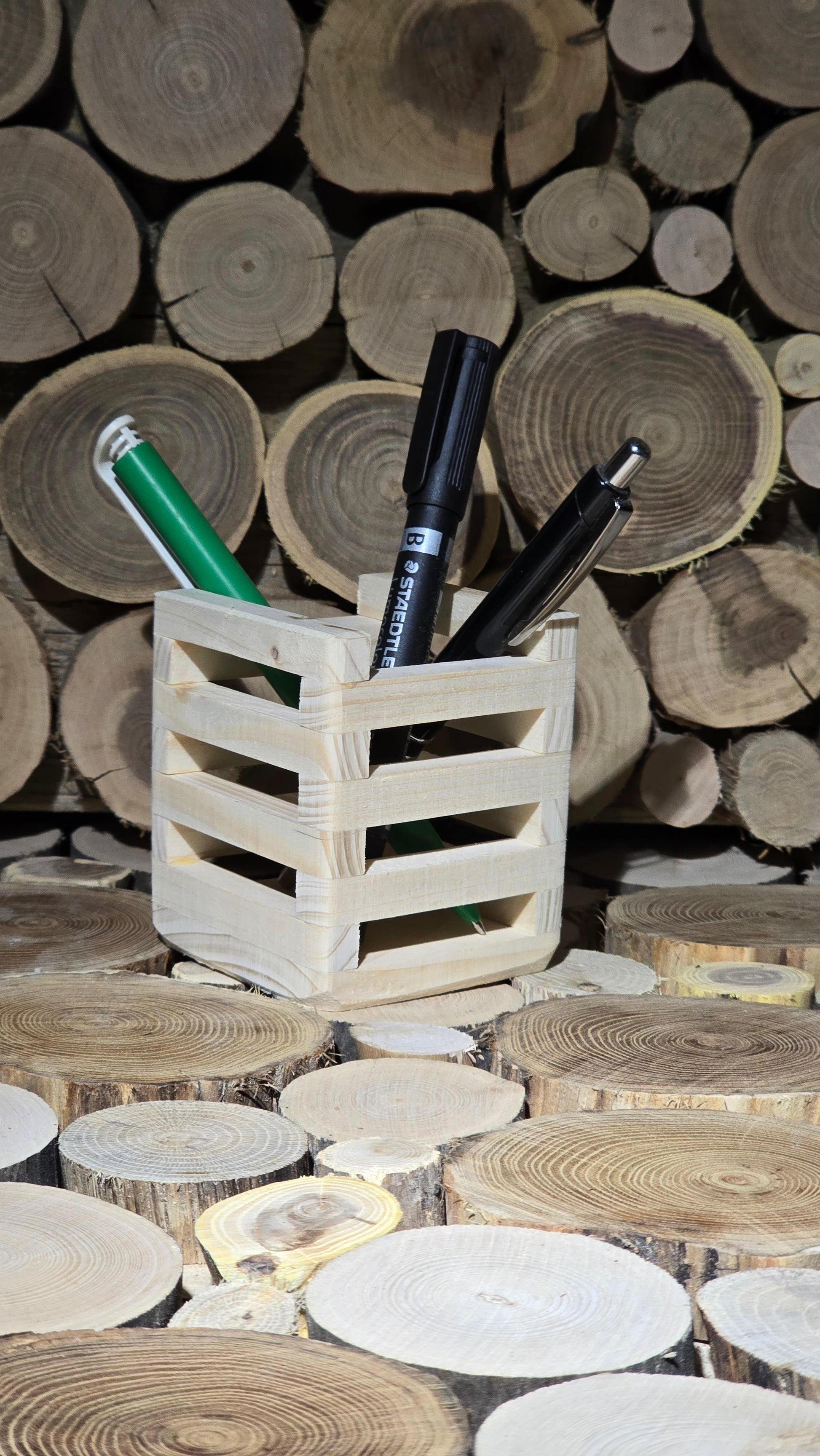 Svoj pribor v pisarni lahko učinkovito ter urejeno shranite v leseni posodi- primerni tudi za recepcijo. Narejena je iz tankega lesa različnih vrst- smreke, hrasta, oreha ter drugih.